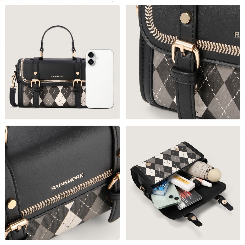 RAINSMORE Retro Argyle Pattern Handbag Women's Versatile Fashion Shoulder Crossbody Bag