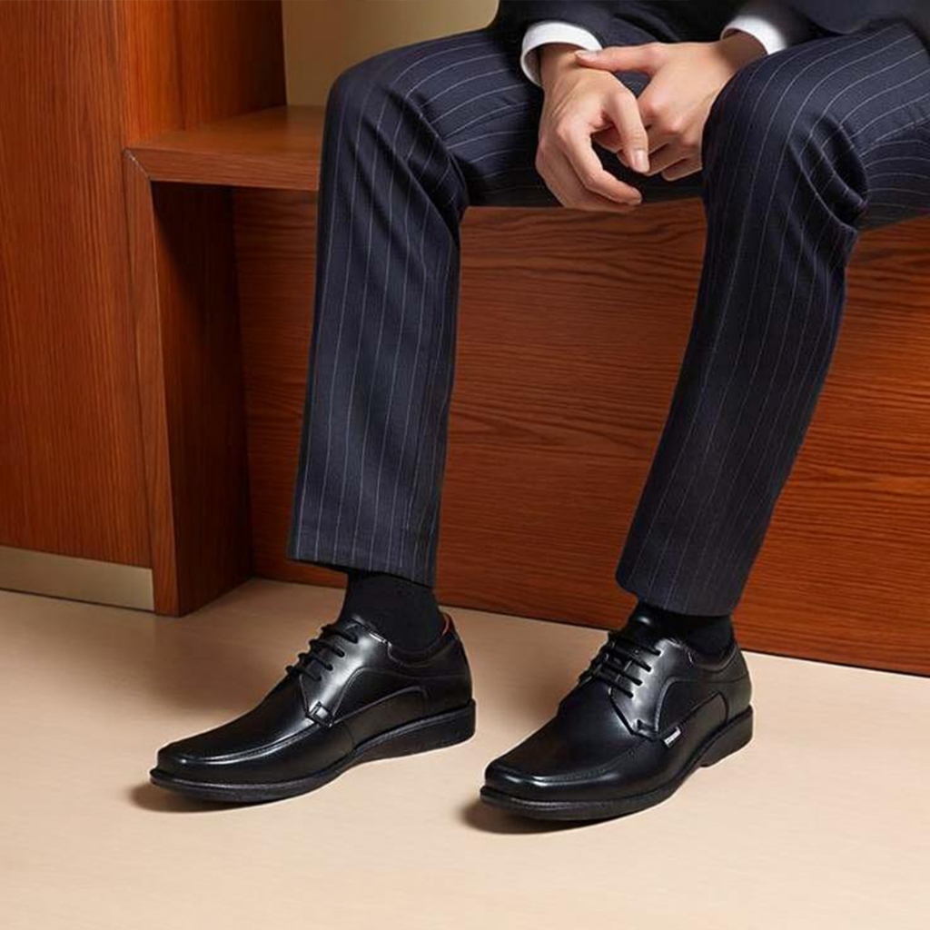 GESCHOSS Full Black Sepatu Kantor Pria Hitam Tali Sepatu Kerja Formal Pantopel Kerja Kasual Santai