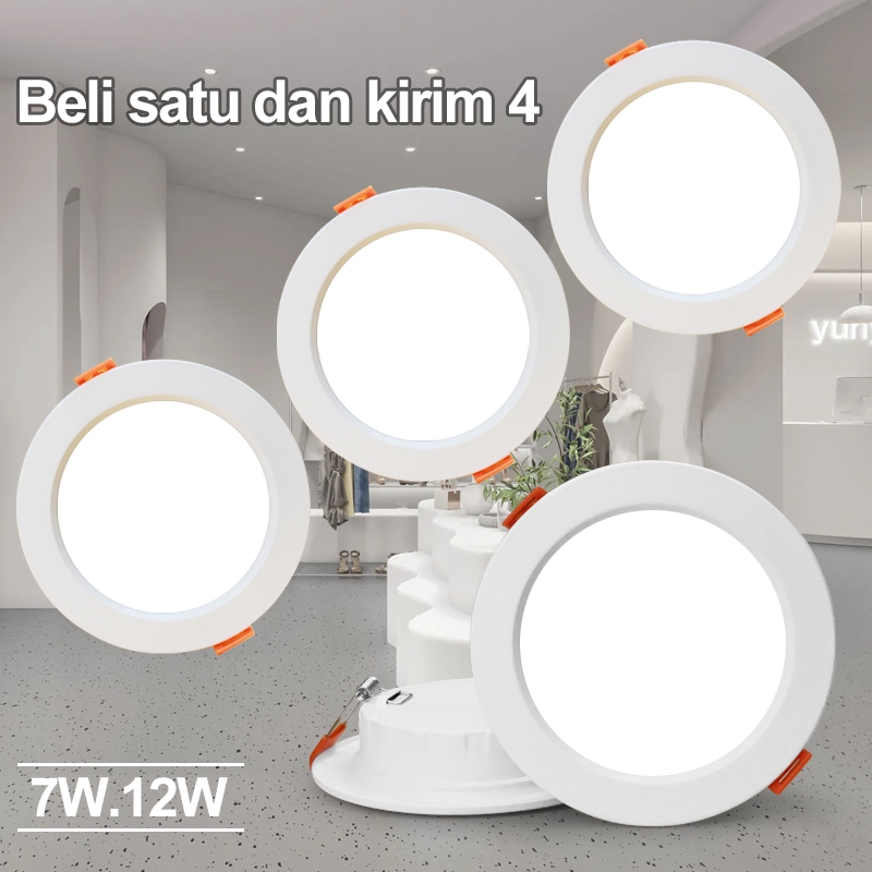 Downlight Led [6 Pcs] 7W/12W - Paket Hemat 3 Warna (Putih, Natural, Kuning) - Hemat Energi & Terang