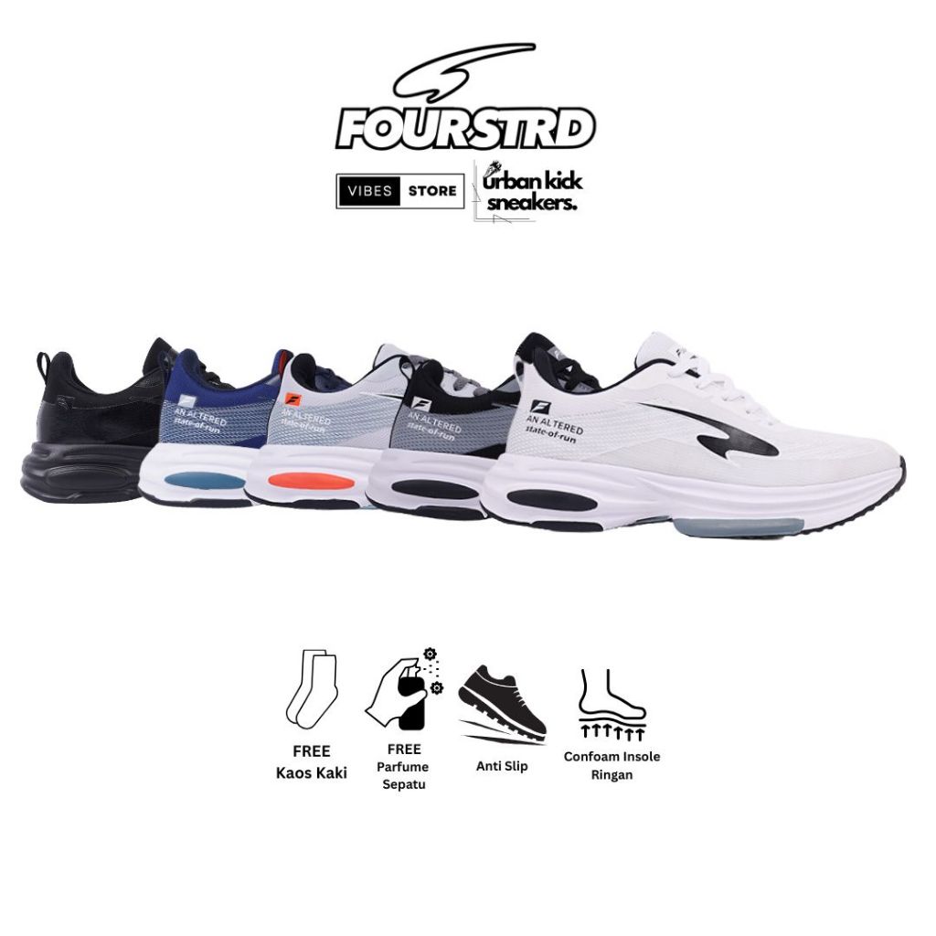 (Vibesstr) Fourstride - Sports Shoes Sepatu Running Gym Max Unisex Putih Hitam Abu