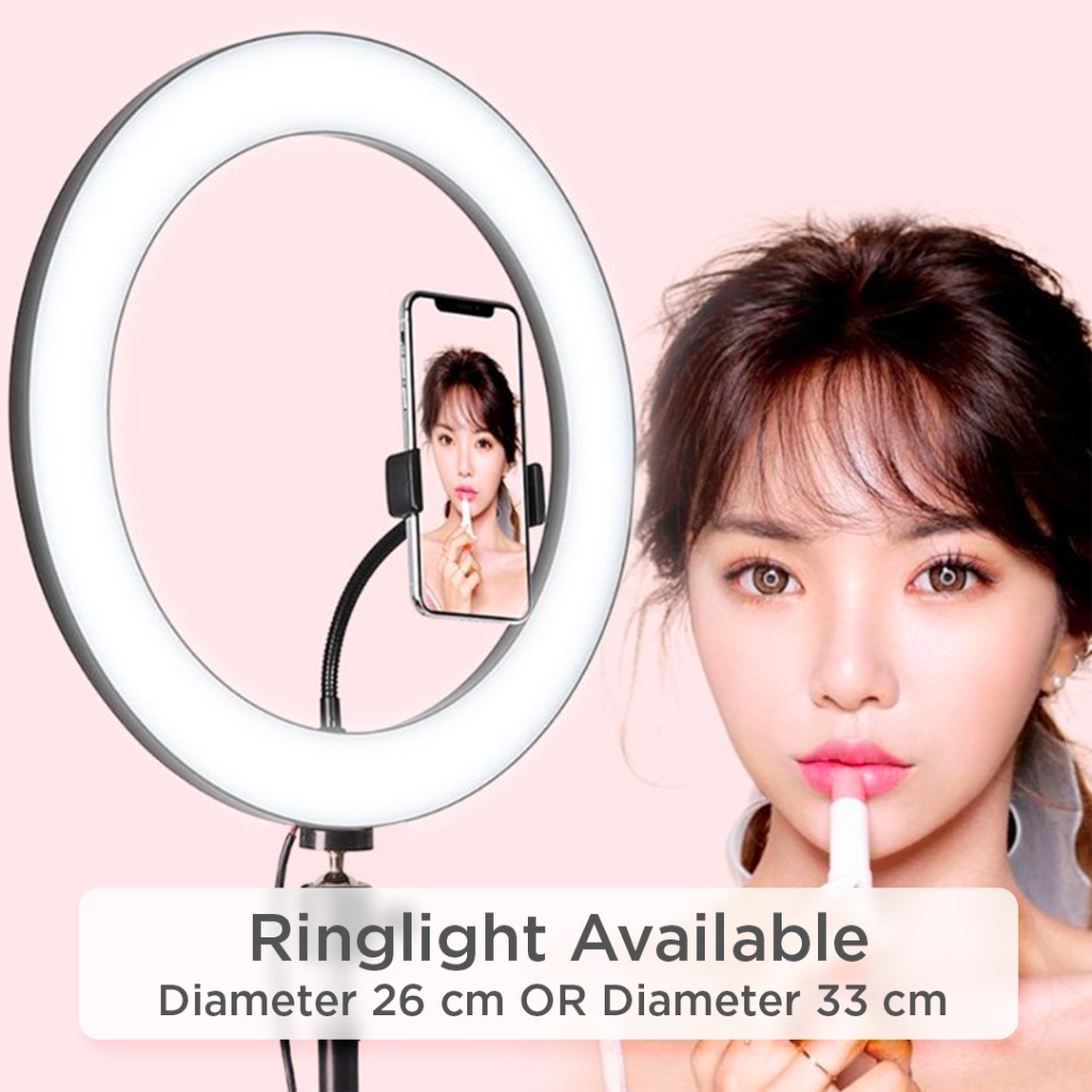 Paket Komplit Murah Ringlight 26Cm / 33Cm + Tripod 2.1 Meter Make Up Vlog Lampu Ringlight