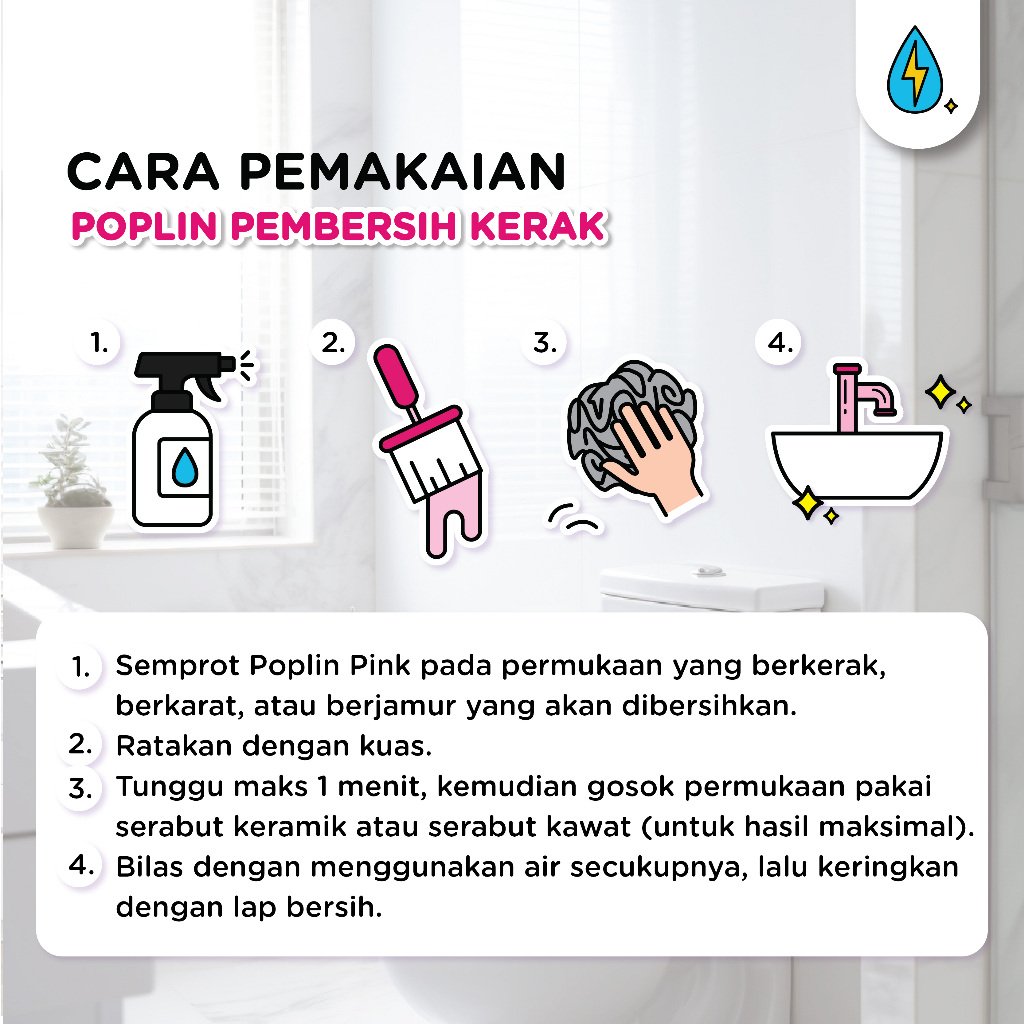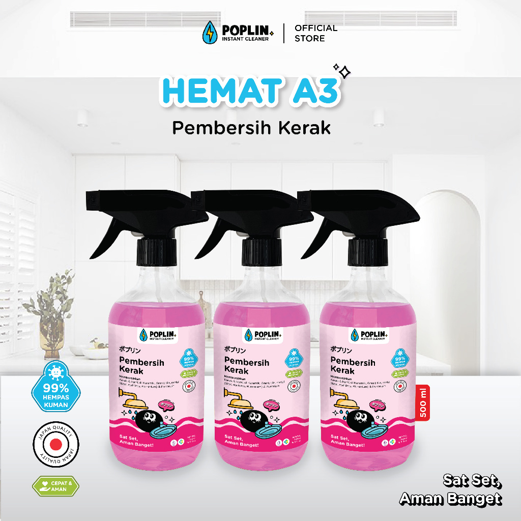 Poplin Paket 3 Pembersih Kerak - Stainless, Kamar Mandi | Antibakteri | Lebih Hemat | Praktis | Cepat | Aman Tanpa .