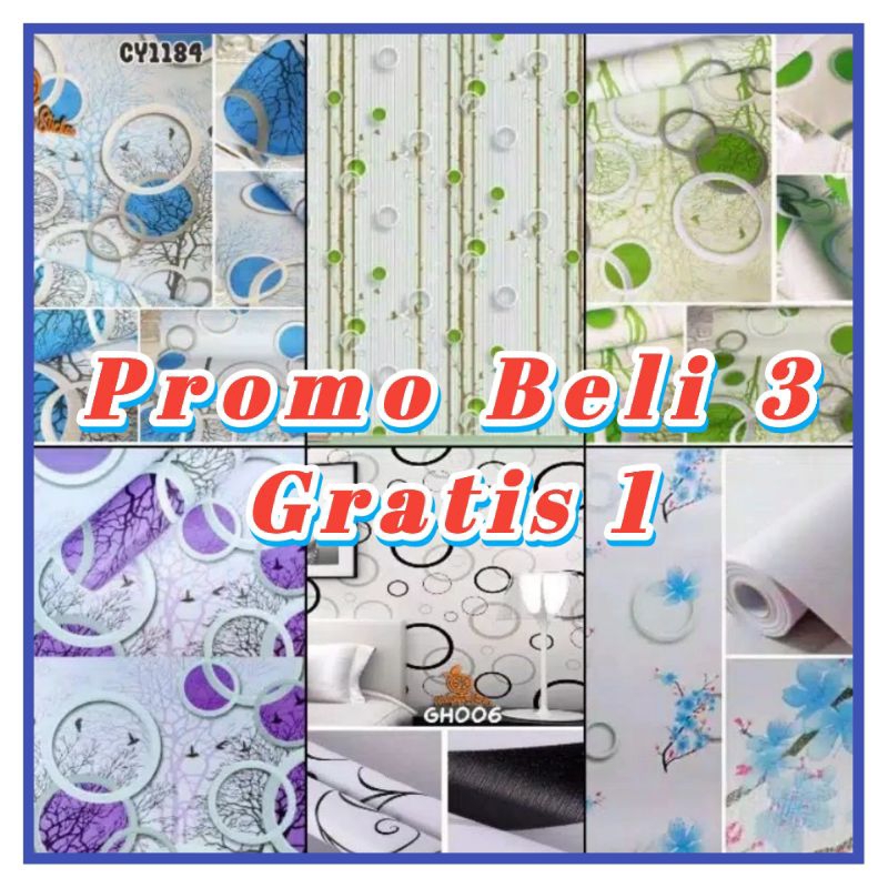 Walpeper dinding kamar motif lkadot / ungu / biru / hijau / walpaper dekorasi