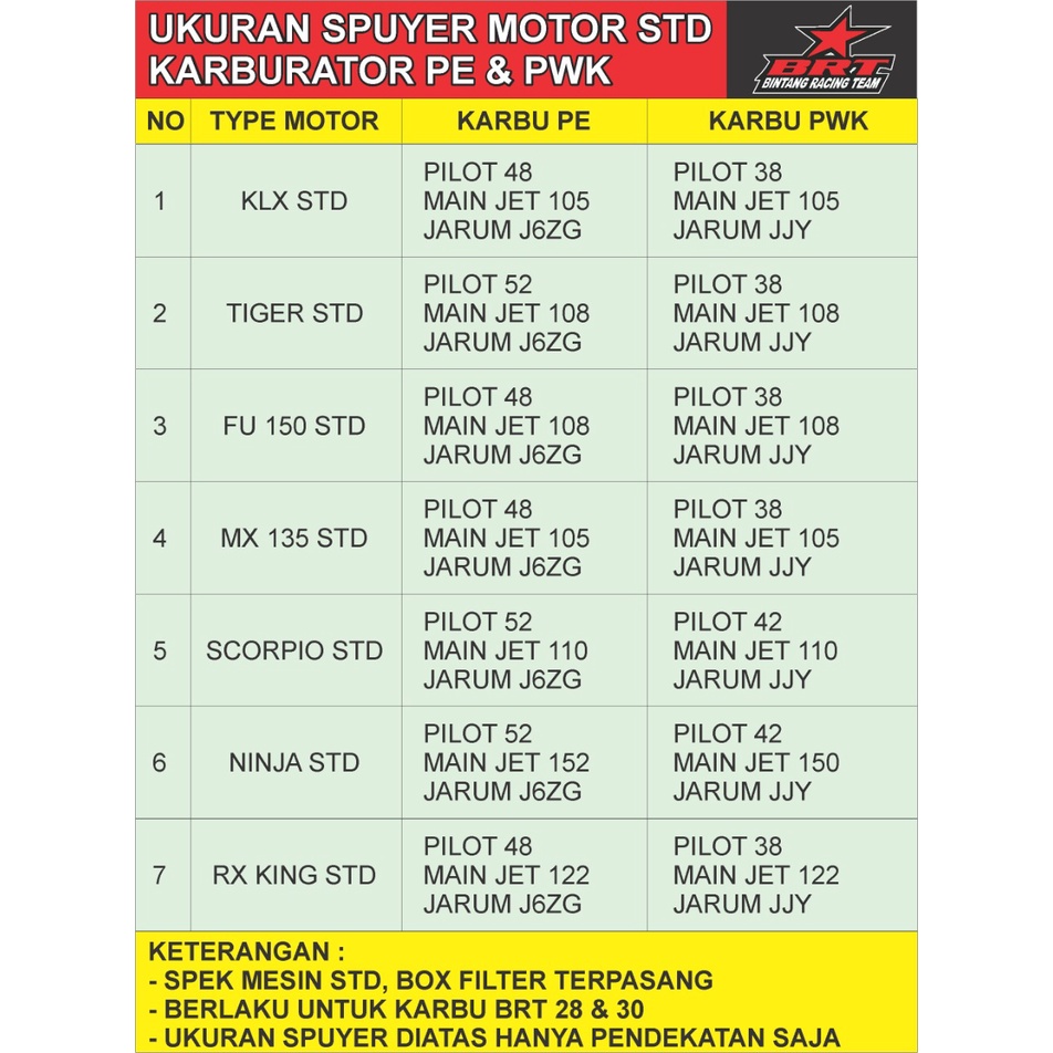 Karburator Brt Karbu Pe Sf 28 & 30 Super Flow Klx Tiger Jupiter Mx Ninja Rx King Fu