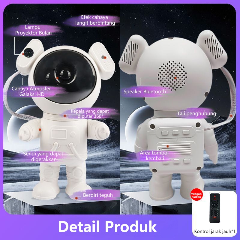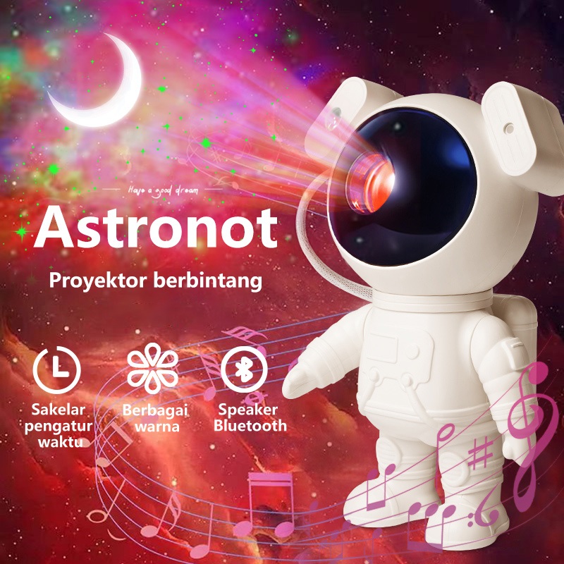 Proyektor Galaksi Astronot Lampu Tidur Langit Bintang Dengan Speaker Bluetooth, Penerangan Bulan & Bint