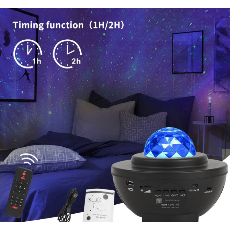 Lampu Tidur Proyektor 2In 1 Galaxy Blue Sky Biru Bluetooth Speaker Musik Remote
