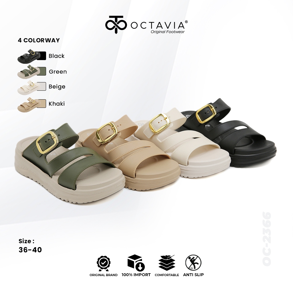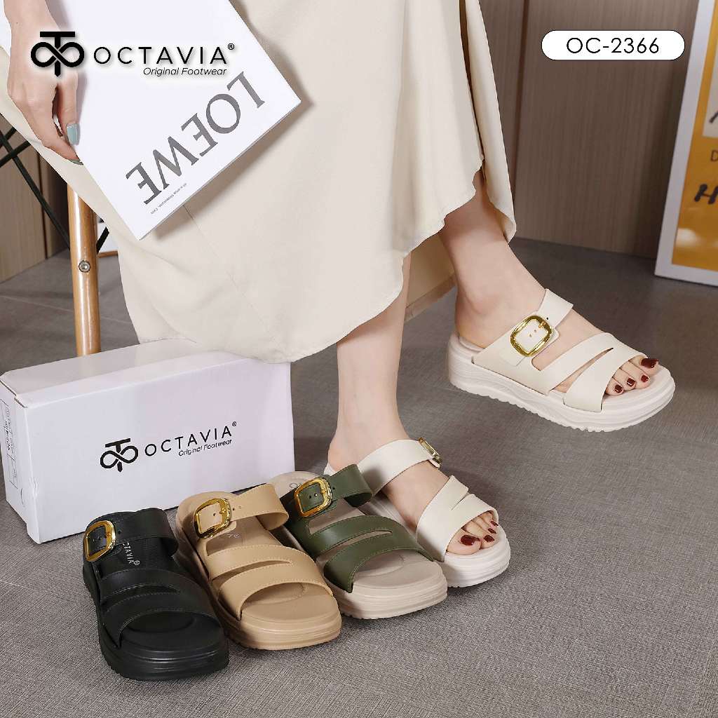Octavia Sandal Slide Slip On Eva Wanita Wedges 5Cm With Belt Strap #Oc-2366 (Free Box)