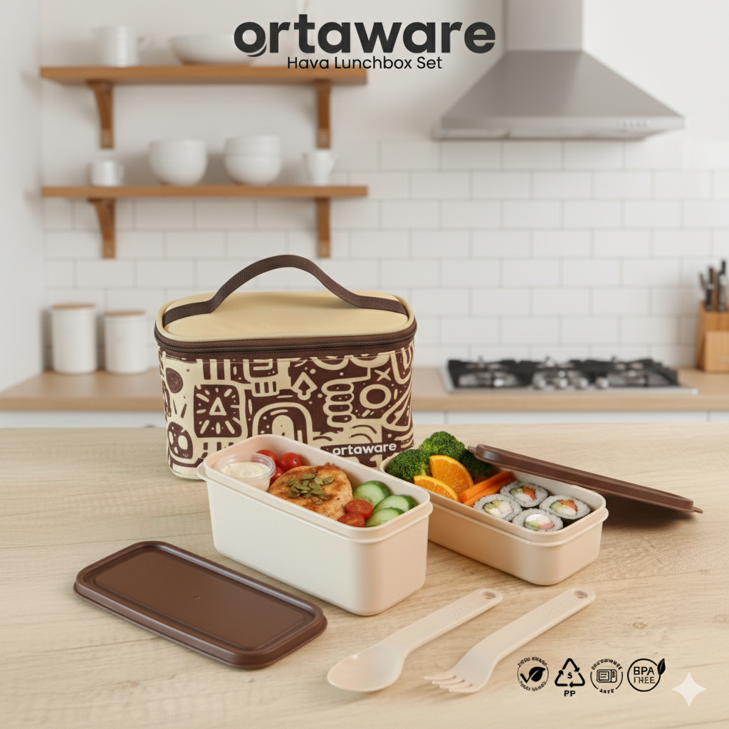 Hava Lunchbox Set X Buncah | Ortaware | Tas + Tempat Bekal 2 Sekat + Sendok Garpu | Bpa Free Microwave Safe