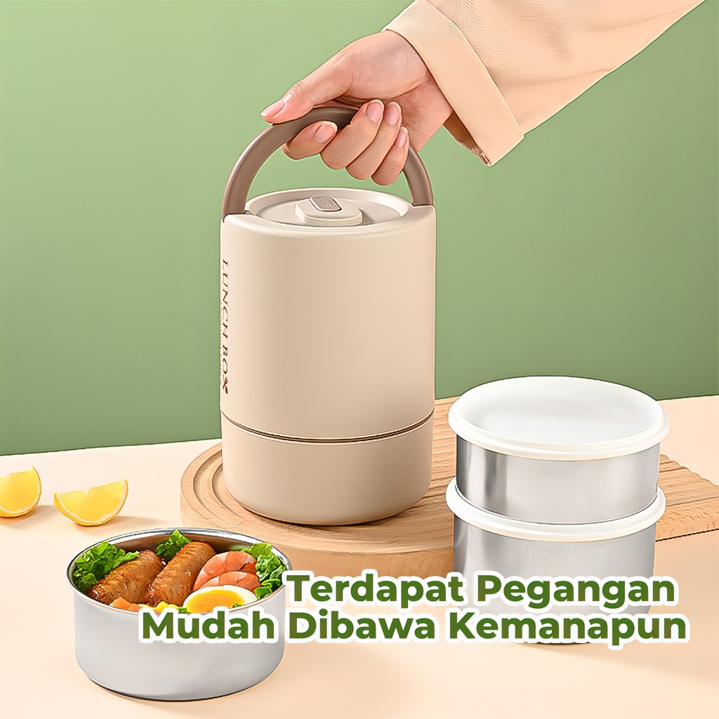 Heefn Lunch Box Stainless 3 Susun Kotak Makan Tempat Makan Kotak Bekal Anti Tumpah