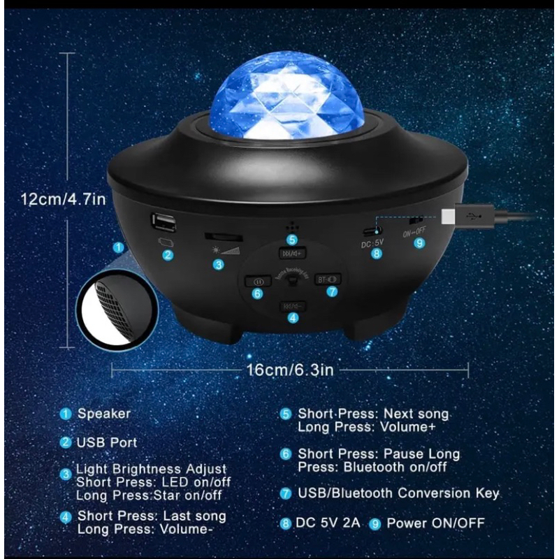 Lampu Galaxy Speaker Lampu Tidur Proyektor