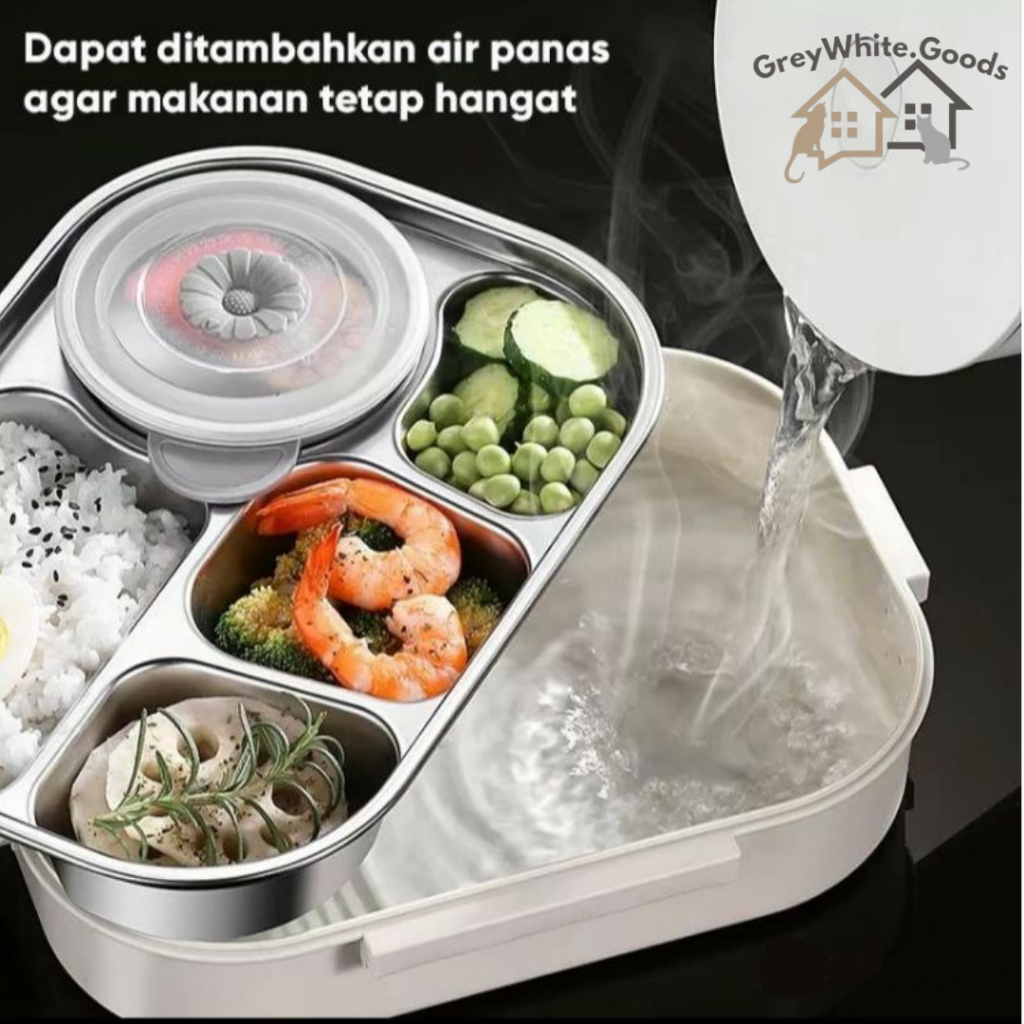 Kotak Makan Set Tas Lunch Box Stainless Steel 304 Premium 4 Sekat Bpa Free Anti Tumpah Tahan Panas