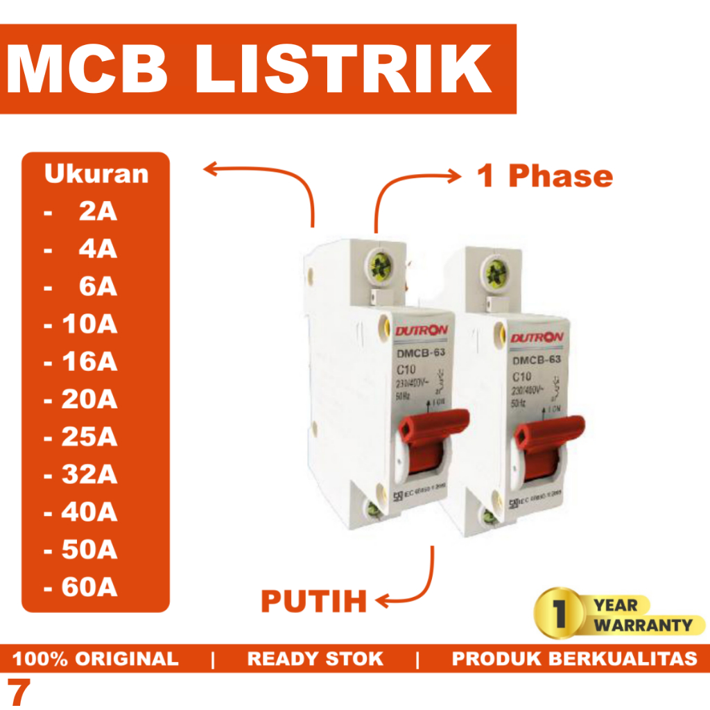 Dutron Mcb Listrik 10A 2A 4A 6A 16A 20A 25A 32A 40A 50A 63A 1 Phase 1Phase Sni 2 4 6 10 16 20 25 32 40 50 63 Amper