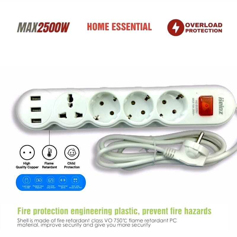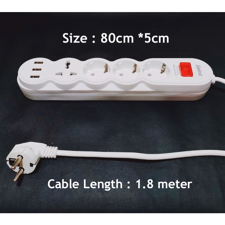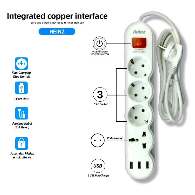 Heinz Highvalue 18M Power Strip Stop Kontak 4 Power Socket 3 Usb Port