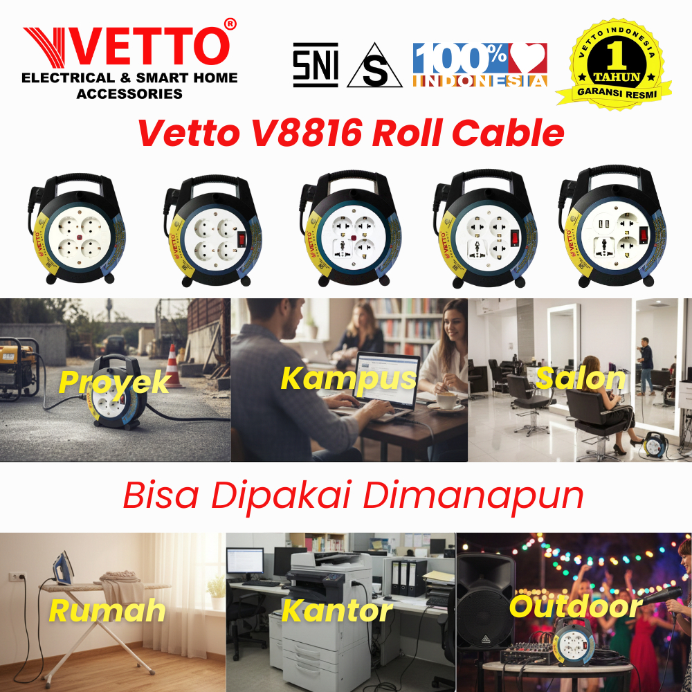 Vetto Kabel Roll V8816/10M Sw Tb - Box Kabel 10 Meter Sni "Best Seller"