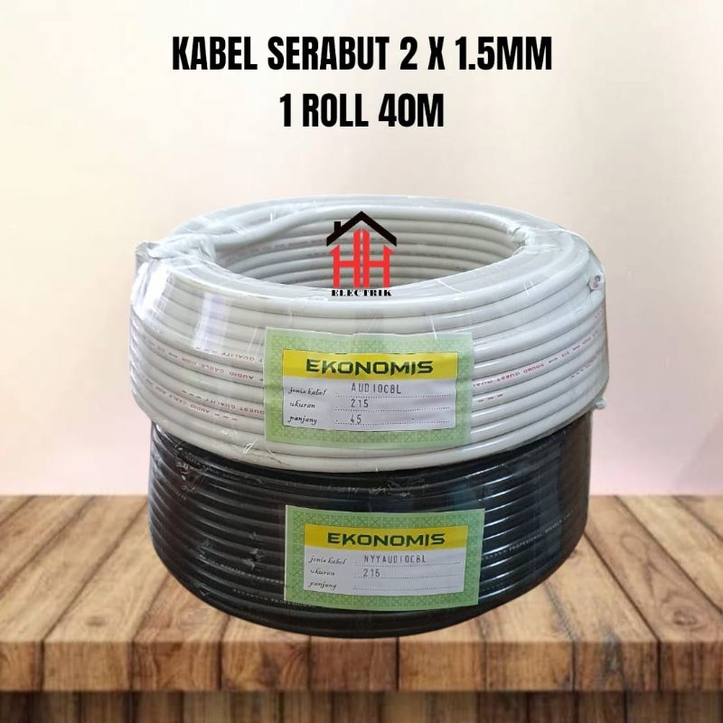 Kabel Listrik Serabut 2X1.5 Ekonomis 1Roll Warna Hitam Dan Putih