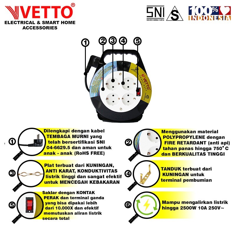 Vetto Kabel Roll 5 Meter Box Full Switch 5M Sni - V2815 5Sw