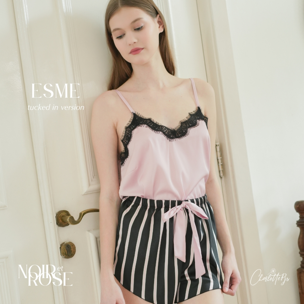 CHARLOTTE - Esme set 2in1 Piyama Baju tidur Tanktop Lingerie Celana Pendek Satin Silk Motif Seserahan Premium