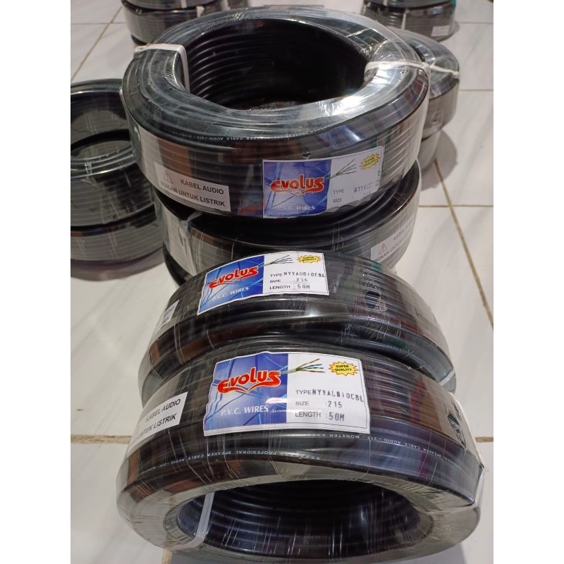 Kabel Listrik Dan Audio Evolus 2X1.5 (50Meter) Hitam Isi 2 Serabut Super Teball