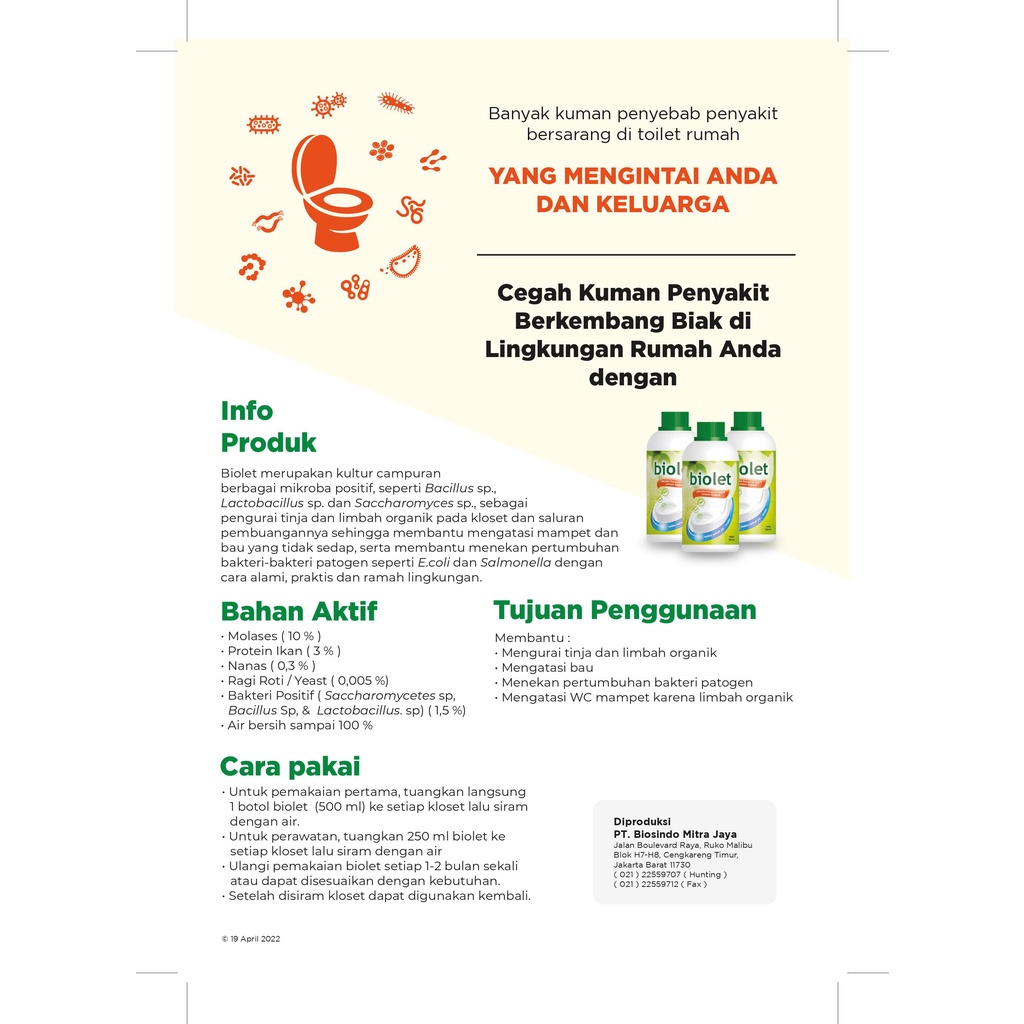 Biolet - Penghilang Bau Wc Toilet Kloset , Pengurai Tinja, Bebas Kuman, Bau & Mampet.
