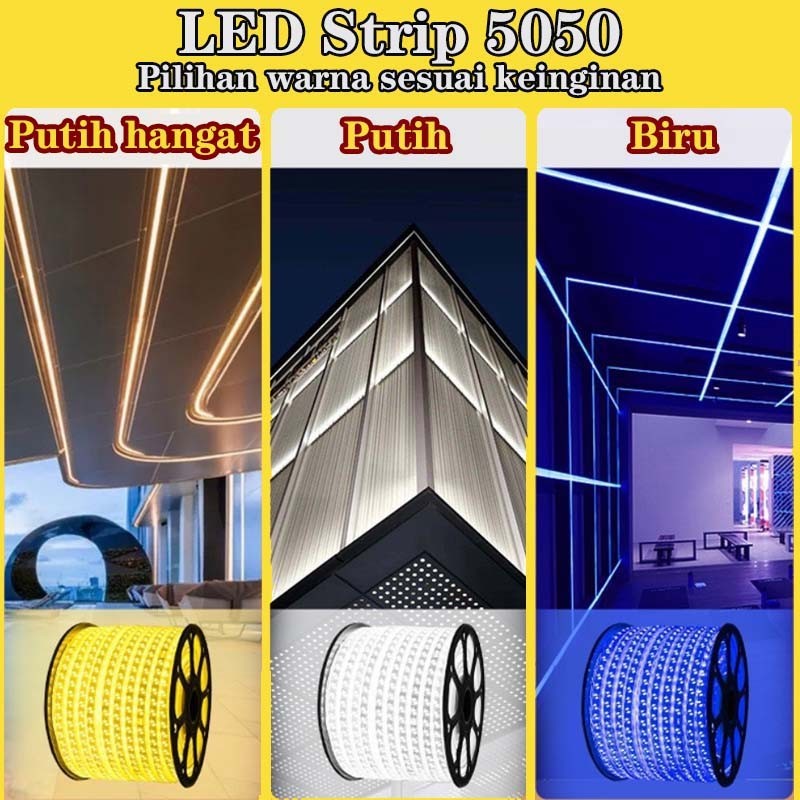 Paket 10 15 20 Meter Gratis 1 Soket (Soket Sudah Terpasang) / Lampu Led Strip 5050 Ac220V Waterproof