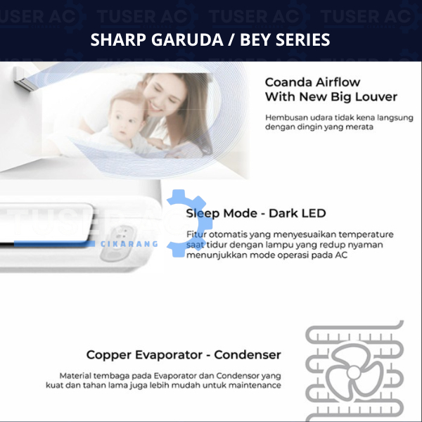 SHARP AC - Garuda Series Basic 0,75PK 3/4PK , Super Jet Mode 550 Watt - AH-A7BEY