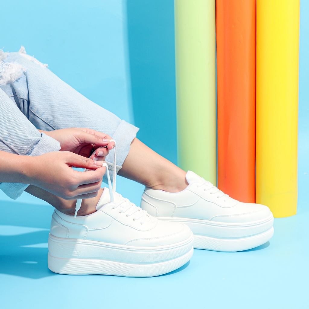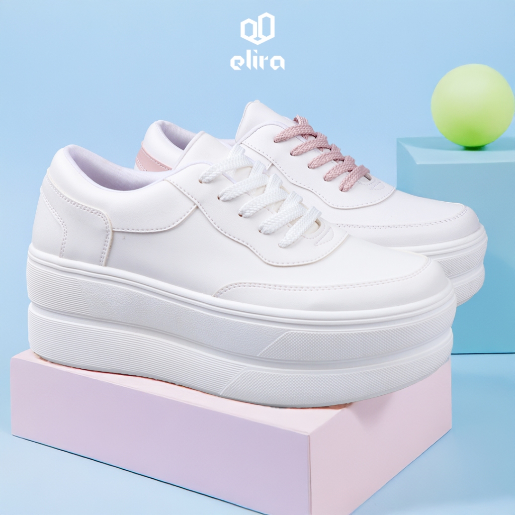 Elira Sepatu Sneakers Platform Wanita Gana White Pink Tinggi Casual Shoes Women