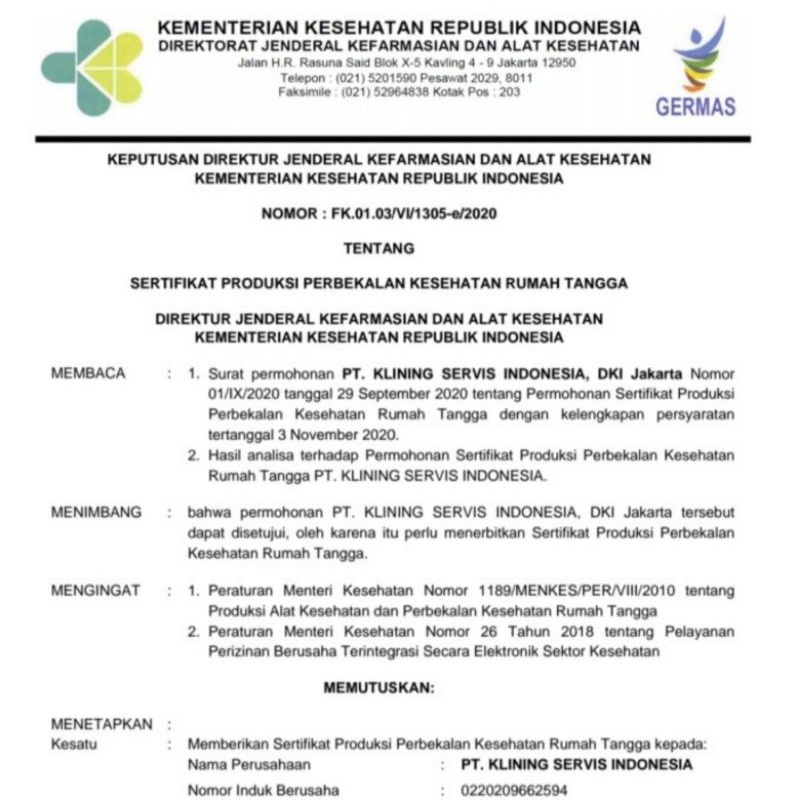 Pembersih Tangki Air / Pembersih Pipa Air / Pembersih Bak Mandi / Pembersih Toren - Klin'S 1 Jerigen