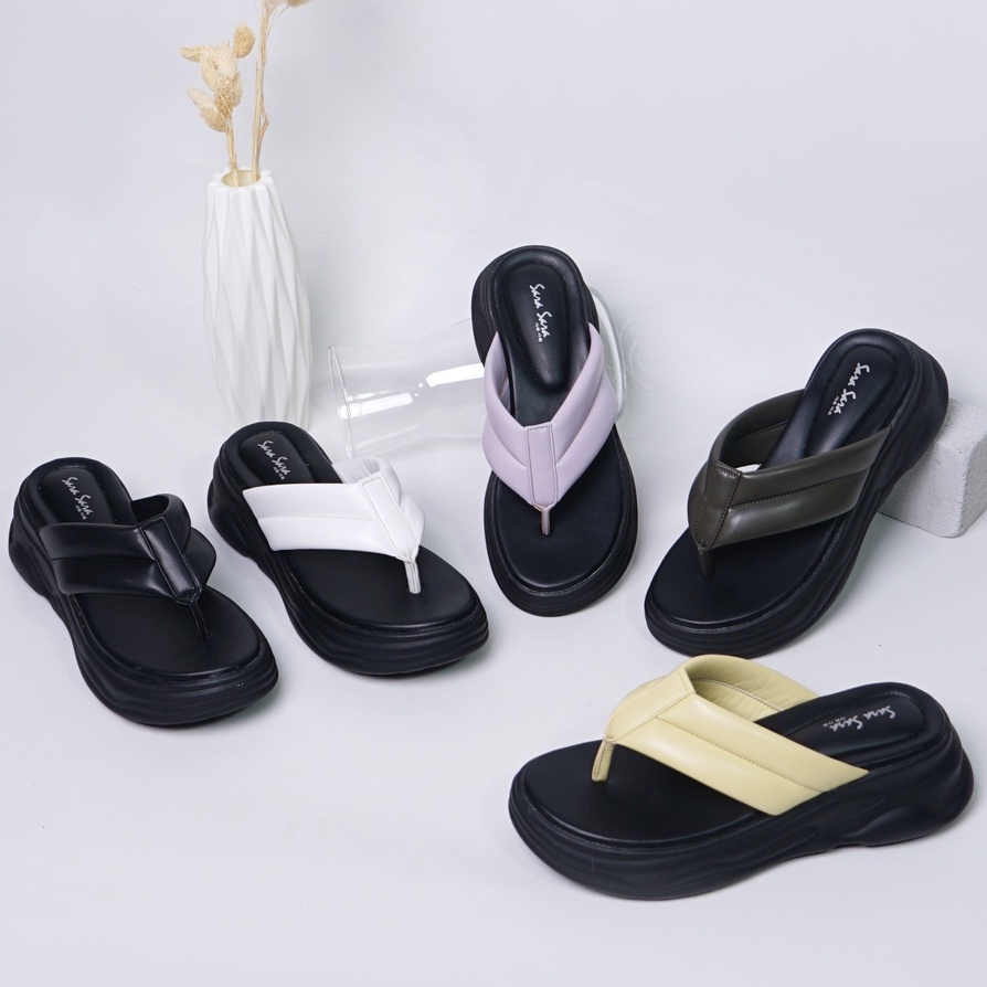 Sara Sara Yuk - Narita Sandal Wanita Wedges Jepit Tinggi 5Cm Size 36 - 40 Casual Sendal Cewek Platform 37 38 39 Untuk Ja