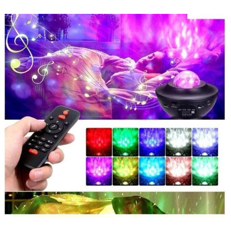 Lampu Tidur Proyektor Speaker Bluetooth Laser Aurora 2 In 1 Plus Remote