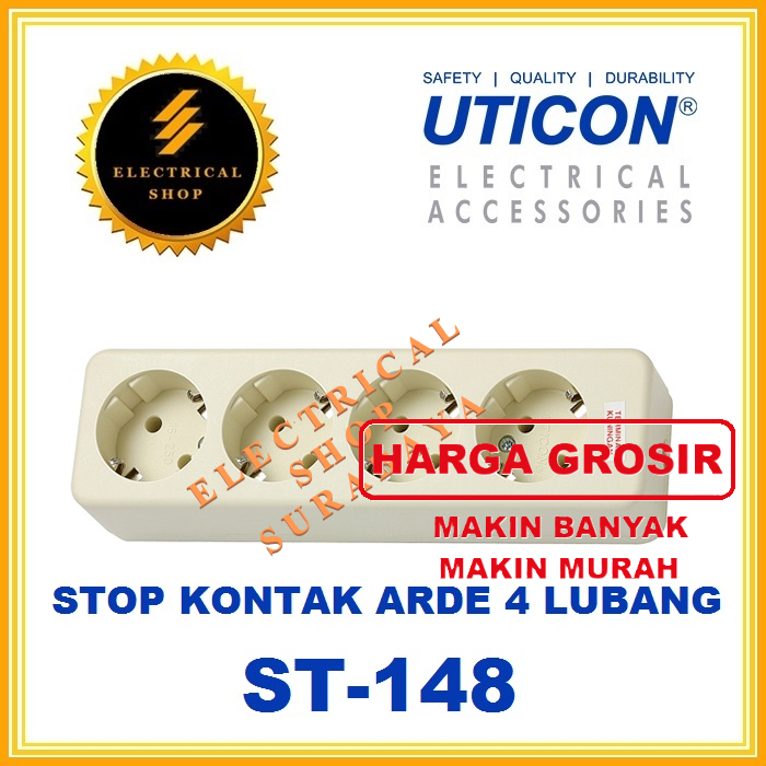 Uticon Stop Kontak Arde 4 Lubang Putih St-148 St148 2P Lobang Sni Promo Murah
