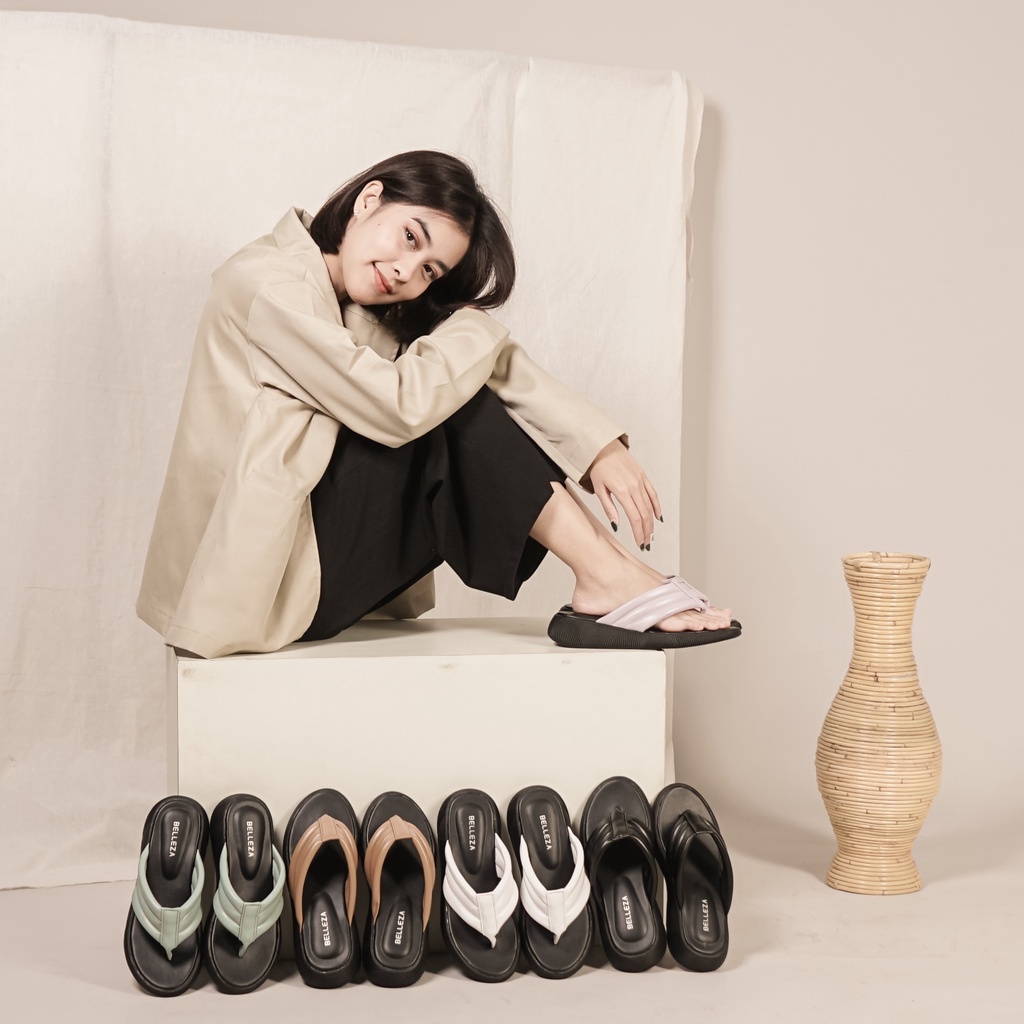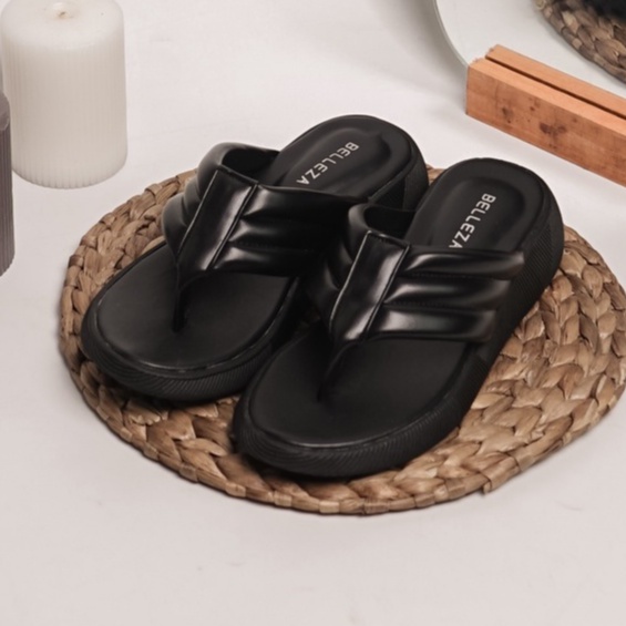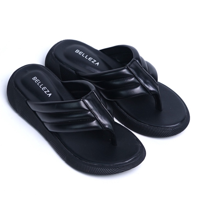 Belleza Mall - Platform Sandals Jenna Black | Sandal Wedges Pergi Wanita Hak Sedang 3Cm - 4Cm Warna Hitam | Sendal Jepit