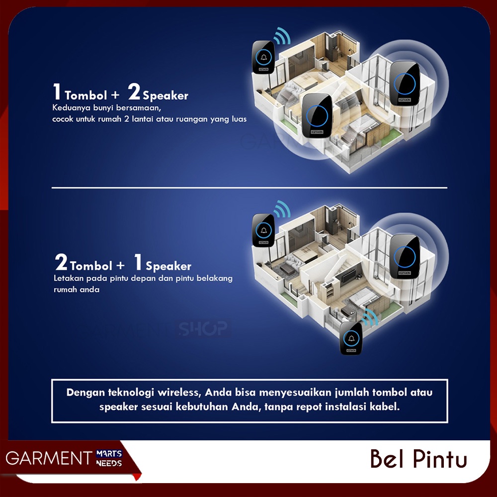 Bel Pintu Wireless Door Bell Waterproof Premium Bagus Untuk Rumah Besar Colok Listrik Hitam Putih
