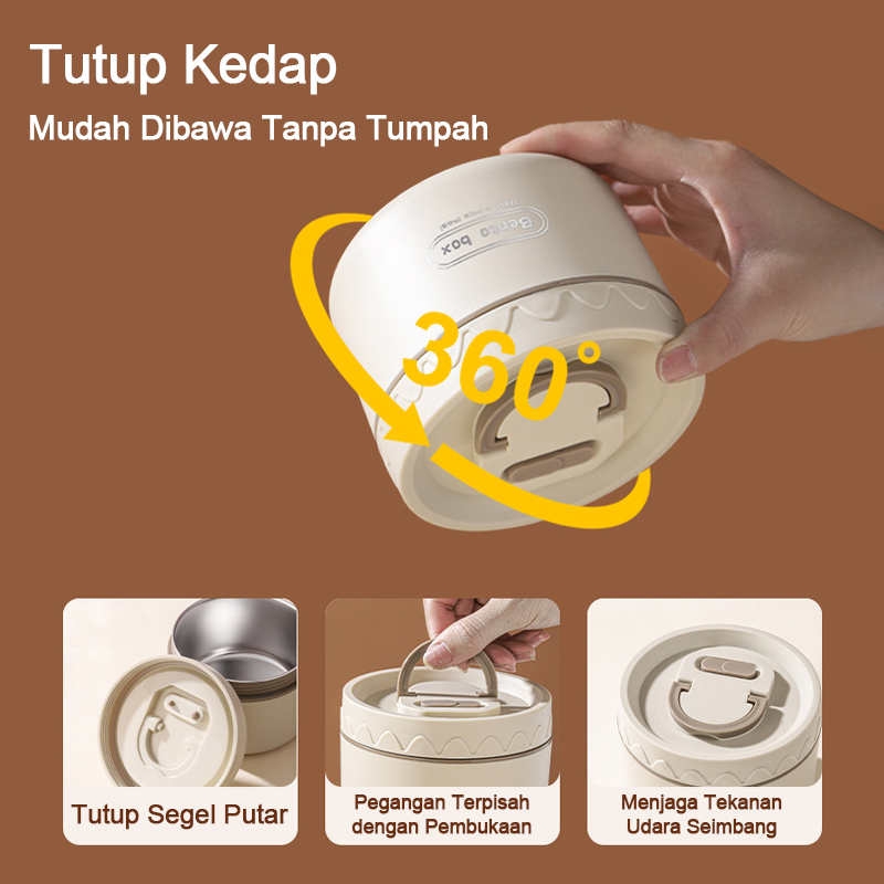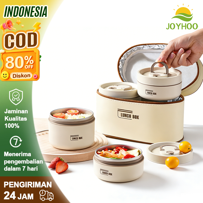 Joyhoo Bekal Tempat Makan Stainless Bekal Makan Set 304 Baja Tahan Karat Kotak Makan Siang Terisolasi Portabel