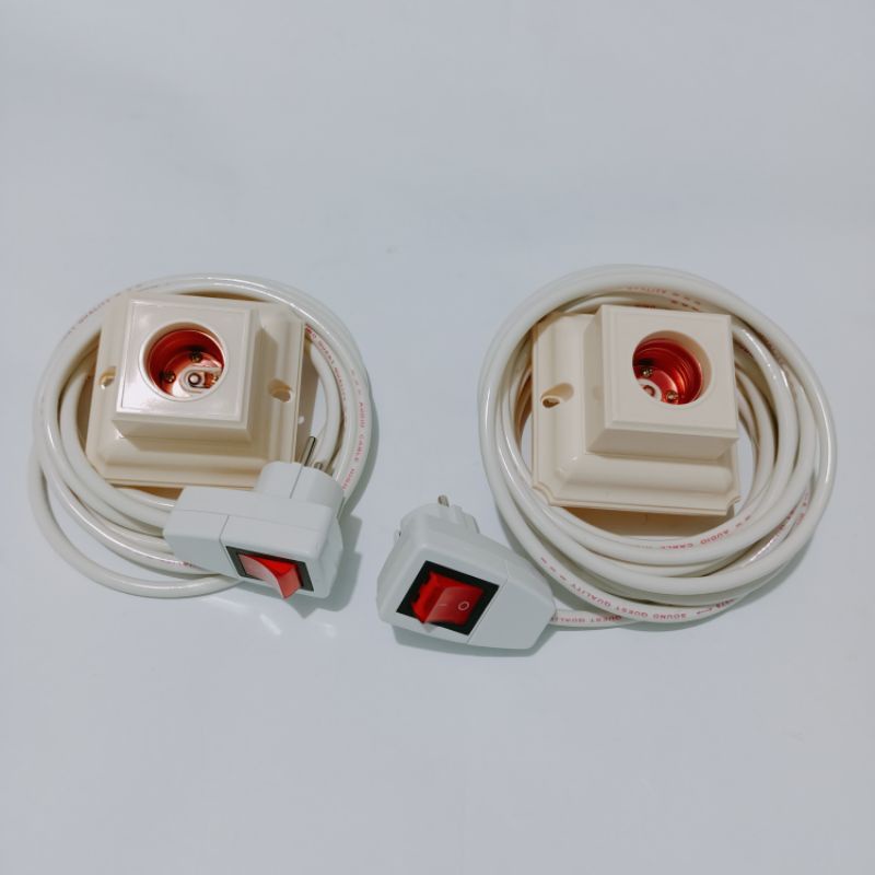 Fiting Plafon Segi +Steker On Off+Kabel 1-10 Meter