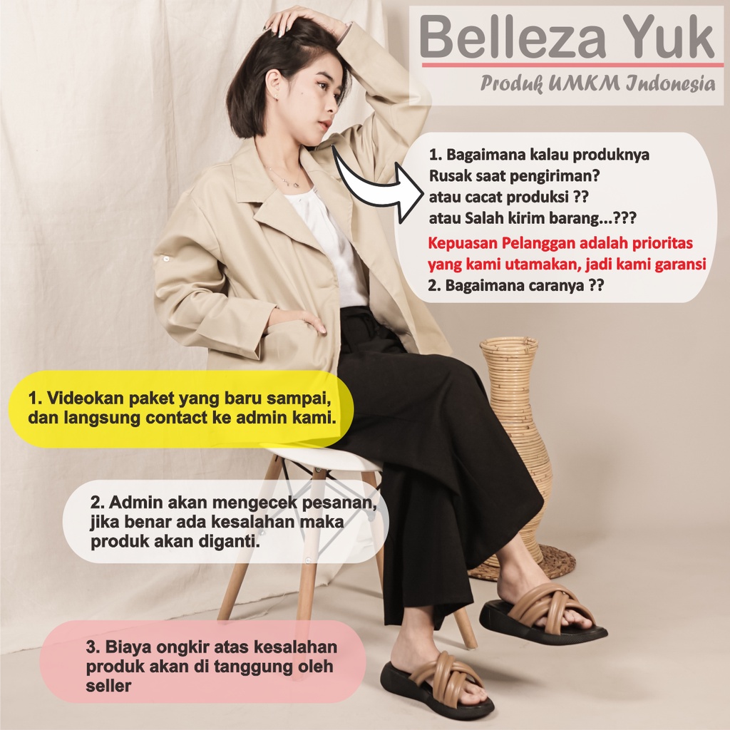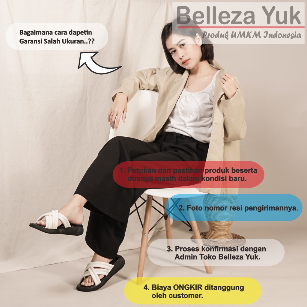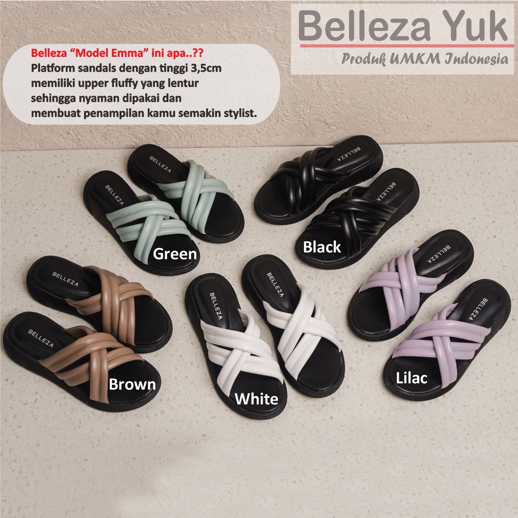Belleza Yuk - Emma Sandal Platform Wanita Wedges 3Cm Size 26 - 41 Sendal Beleza Model Silang Empuk Warna Hitam Black 3 S