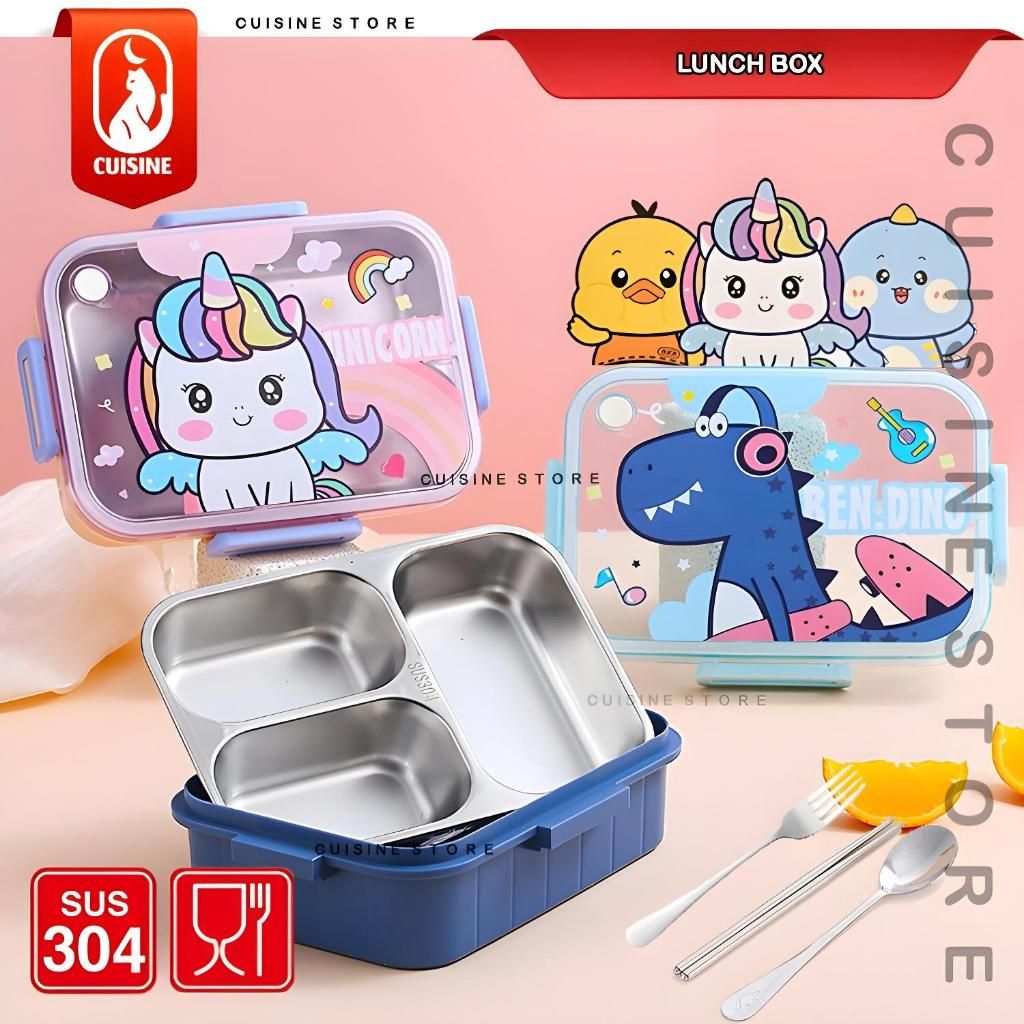 Lunch Box Set Anak Sekolah Stainless 304 Sekat 3 Dan 4 Kotak Makan Bekal Motif Bebek Dino Unicorn
