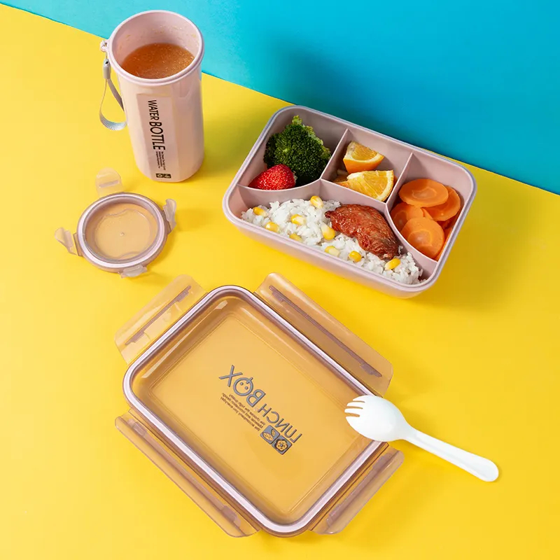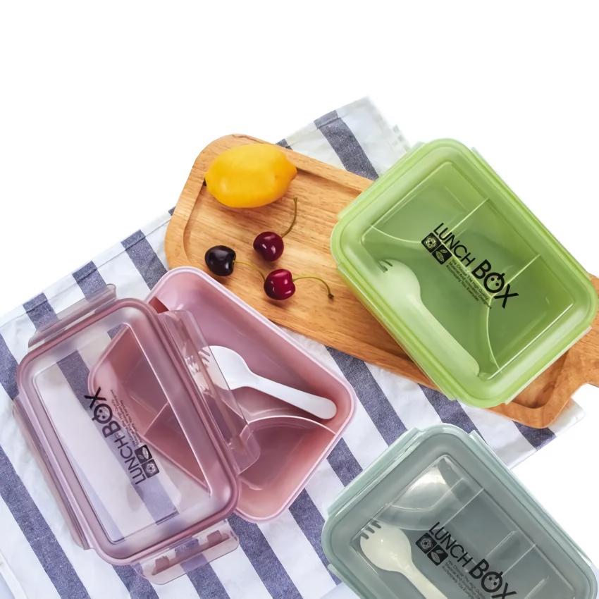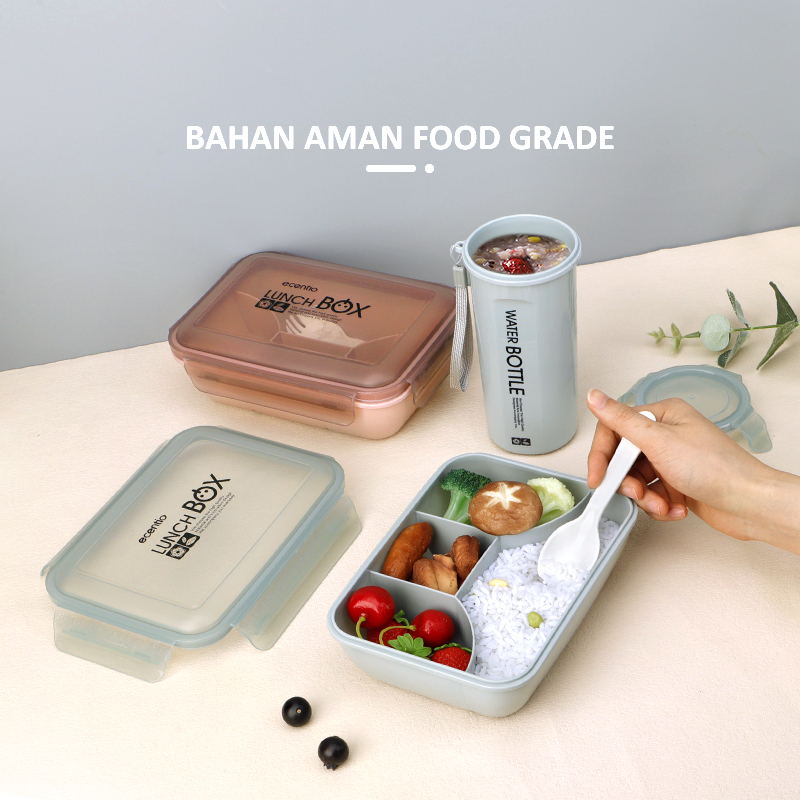 Lunch Box Set Kotak Bekal 4 Sekat Free Botol Minum Free Sendok 8233