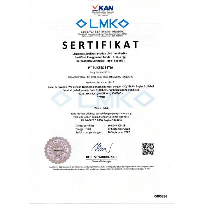 Sni Ftb Kabel Nyyhy 2X4 Sqmm 450/750V Meteran ( Zr-Rvv / Solar 2X4Mm Nyyhy 2X4Mm 2 )