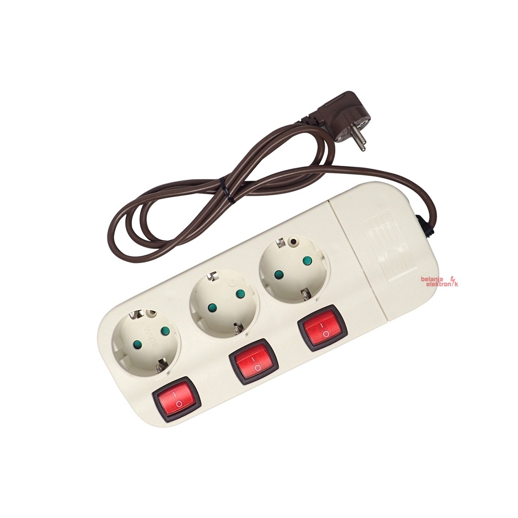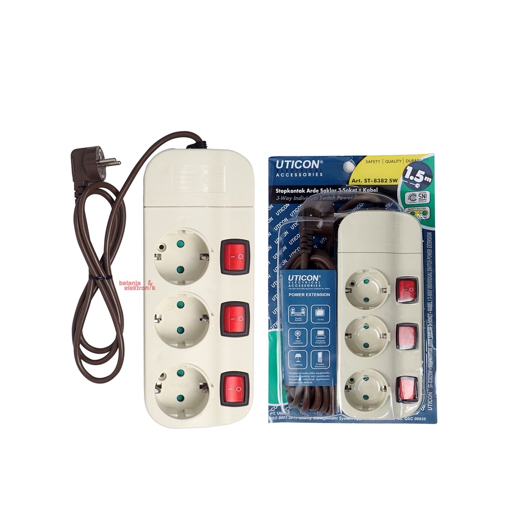 Stop Kontak 3 Lubang Kabel 15M Terminal Kontak Kuningan + Saklar Uticon St-8382 Sw