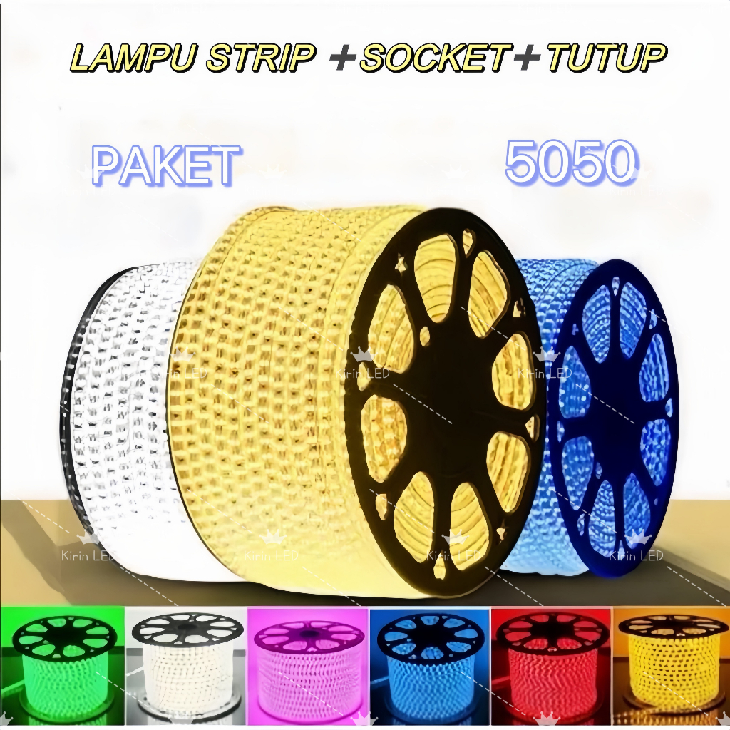 Paket Lampu Led Strip Selang 5050 1M-2M-3M-5M-8M-10Meter (Lampu Strip+ Soket+Tutup )5050 Lampu Hias Cafe Led Strip