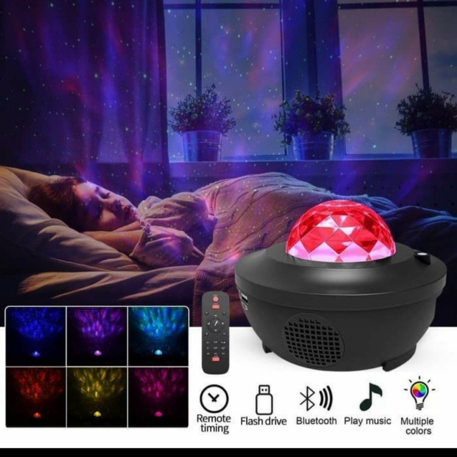Lampu Tidur Proyektor Langit Bintang Bluetooth + Remote + Auto Off