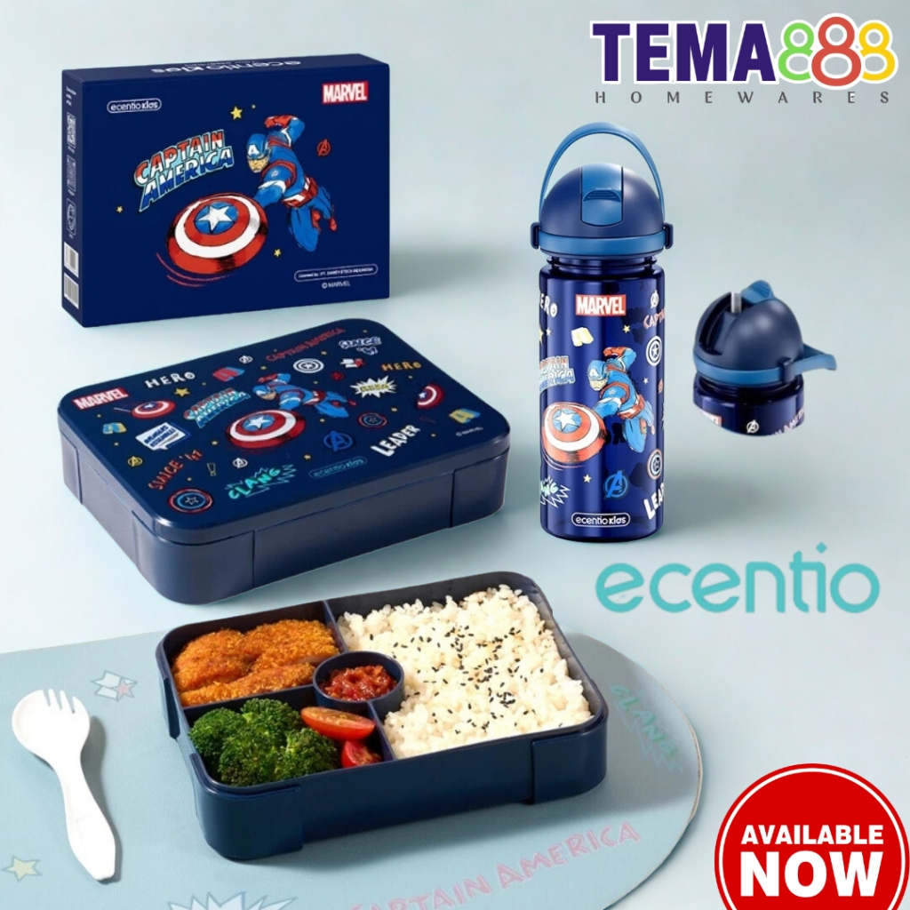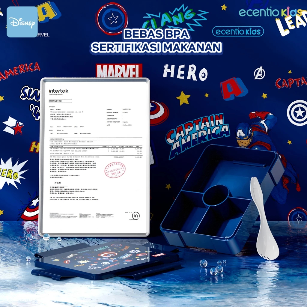 Ecentio Lunch Box Set Anak Anti Tumpah 4 Grid Tempat Makan Marvel Captain America Lucu Dengan Sendok