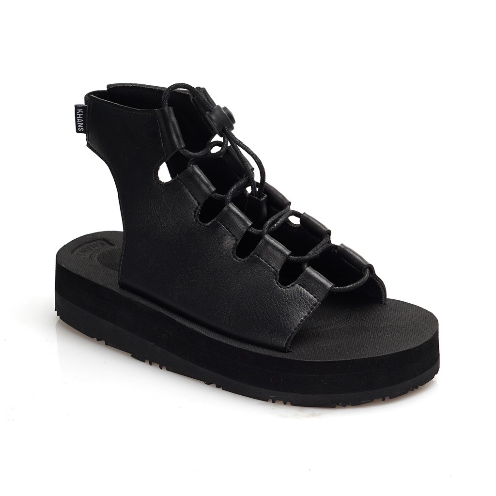 Khans - Sandal Platform Wedges Wanita - Yeji Black
