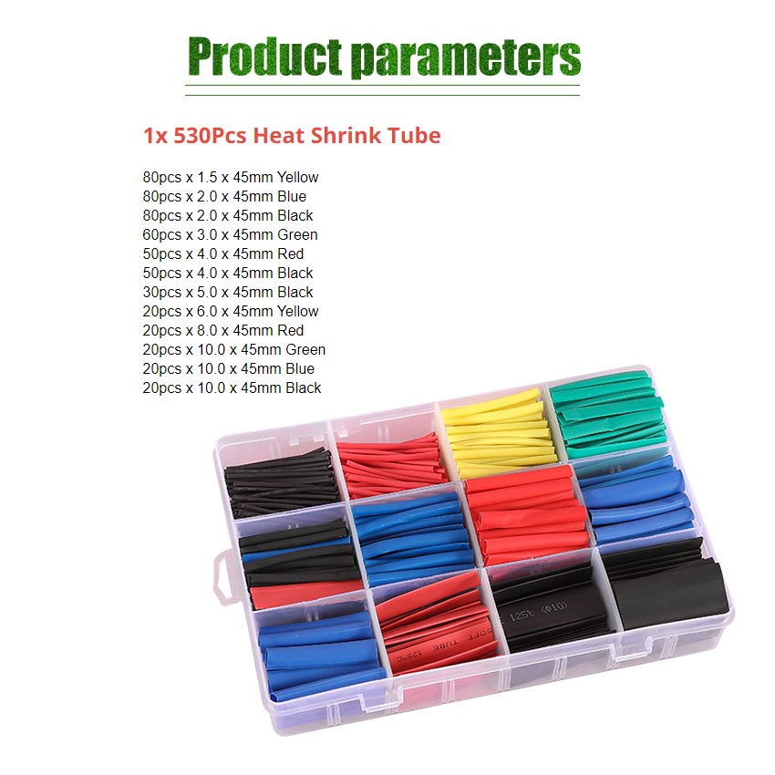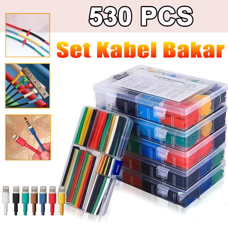 530Pcs Set Kabel Heat Shrink Bahan Polyolefin Warna Warni /Heat Shrink Tube Selang Kabel Isolasl / Heat Shrink