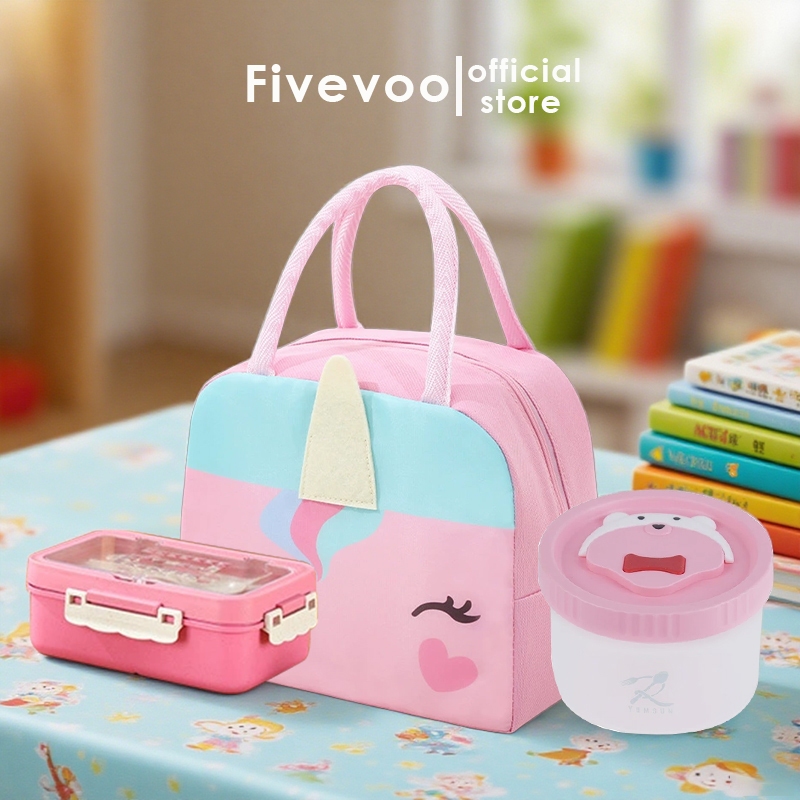 Fivevoo Set Bekal Makan Siang/ Paket Tas Bekal/ Kotak Makan/ Wadah Sup