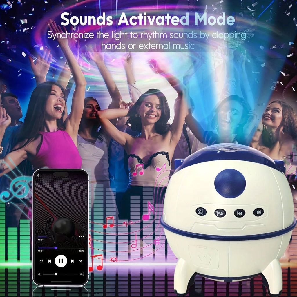 Lampu Speaker Proyektor Galaxy Bulat Aurora Astronot Laser / Lampu Tidur Galaxy Aurora Bluetooth Speaker