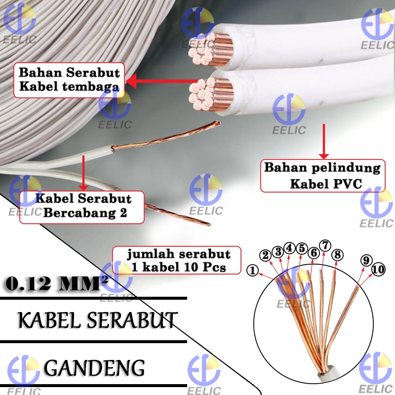 Eelic Kal-2X10 Kabel Twin Kabel 2 Cabang 2P 26Awg Ukuran 012 Mm2 Panjang 10Meter 10Pcs Serabut Per Kabel Bahan Tembaga A