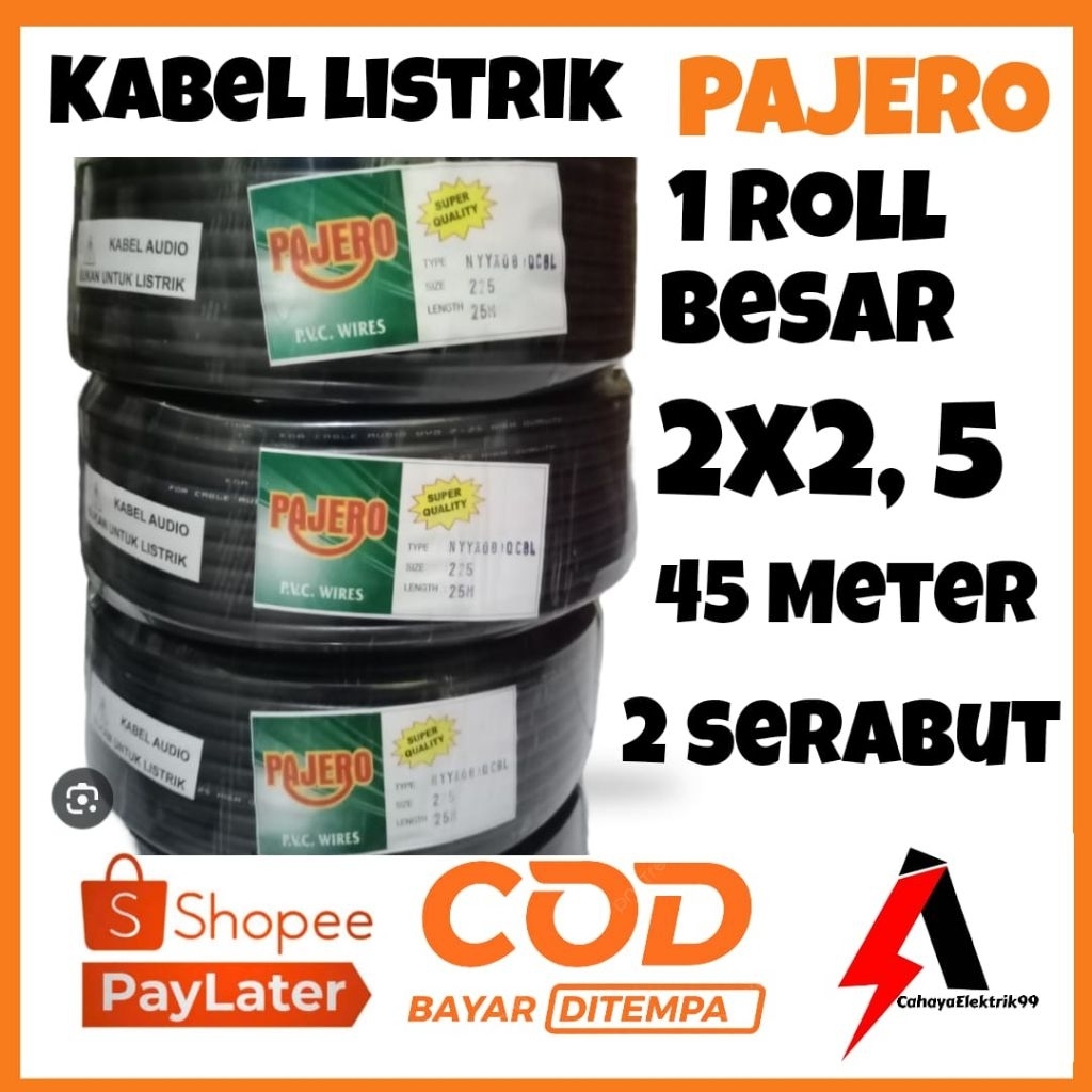 Kabel Listrik Dan Audio Pajero 2X2,5 50 Yard 45 Meter Full Isi 2 Serabut Tebel Warna Hitam(1Rol Besar)