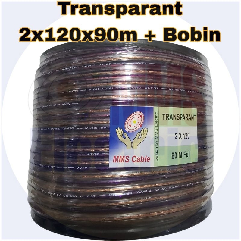 Mms Kabel Transparant Panjang 90M Full+Bobin (2×30, 2X50, 2X80 & 2X120)