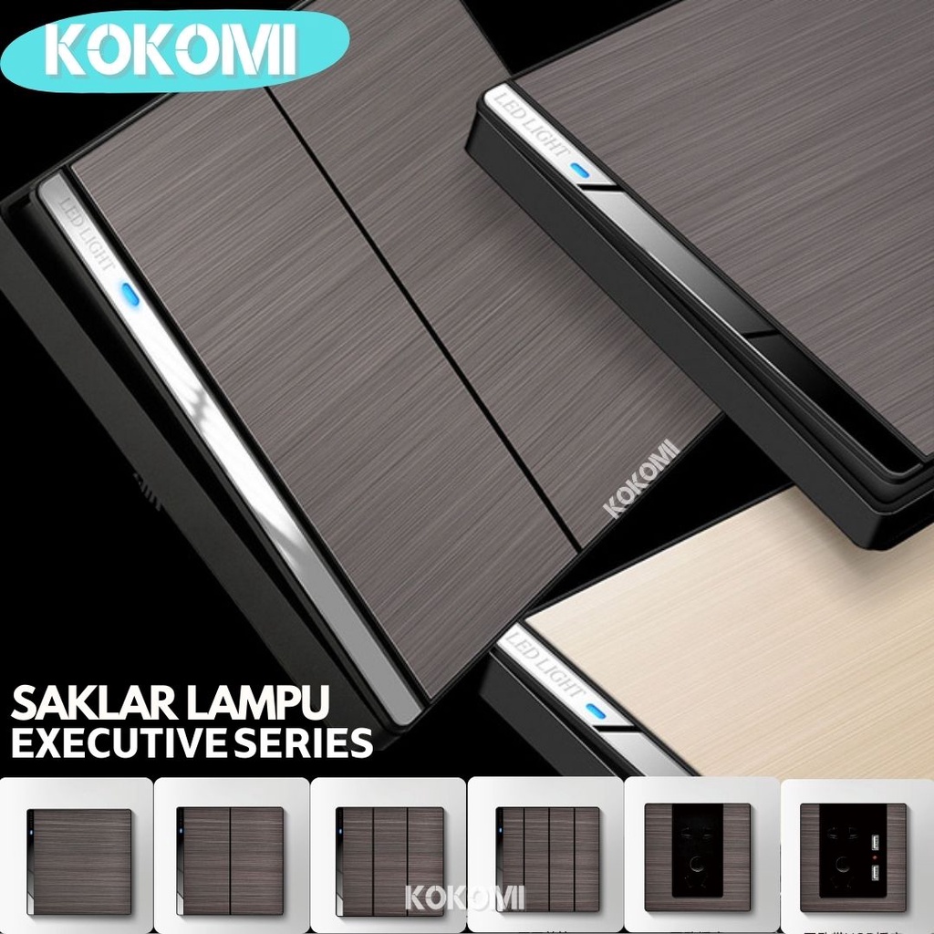 Kokomi Saklar Dinding Soket Executive Coffee Series Wall Socket Golden Brushed 1/2/3 Gang 1 Way Stop